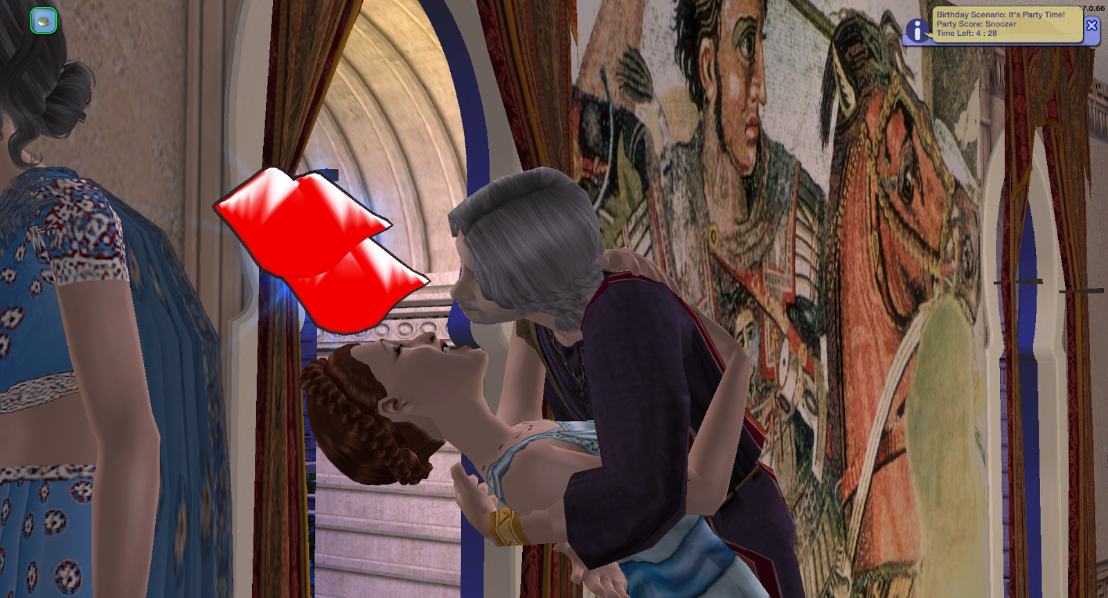 Party time again - this time, I was a bit shocked to see the Empress' father Andile making out with Albanus' bethrothed, Balbina.